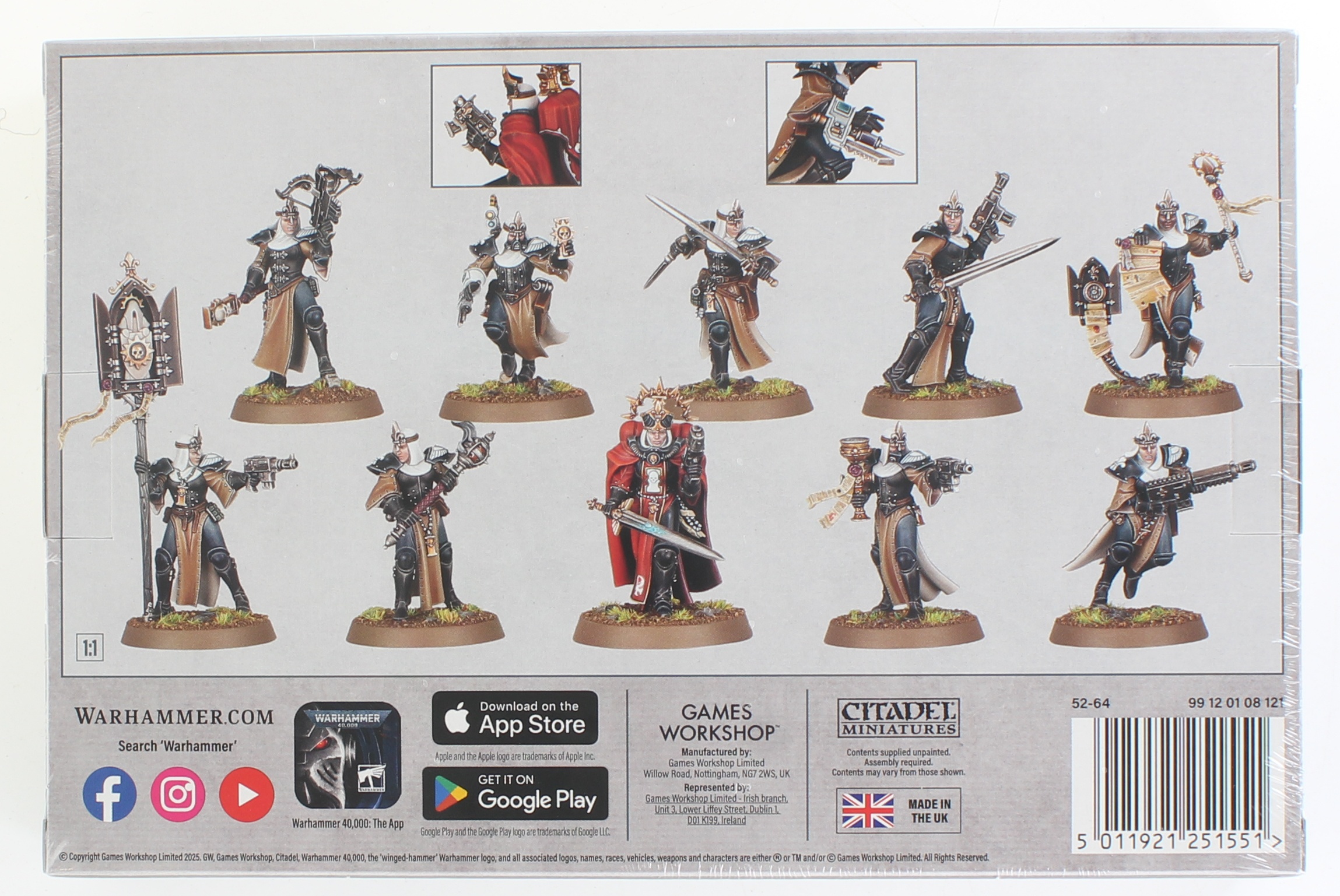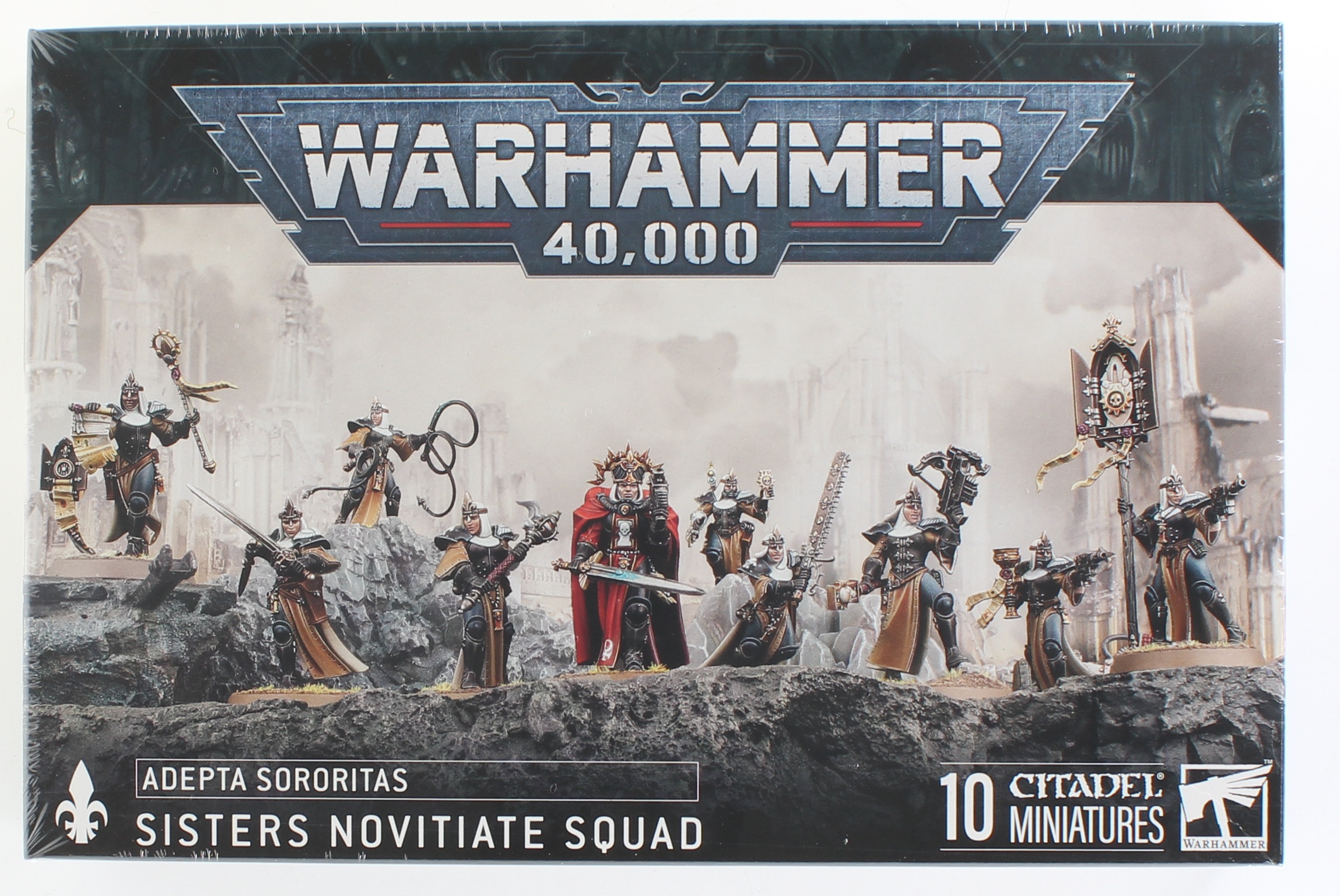 The Sisters Novitiate are the eager recruits of the Adepta Sororitas, zealous initiates tested in the crucible of battle under the stern guidance of a Drill Abbot with to hopes to become proper Battle Sisters. This kit was originally from the Kill Team range, it is now repackaged for Warhammer 40,000. Inside youll find 10 miniatures, along with an Adepta Sororitas transfer sheet containing 290 decals.