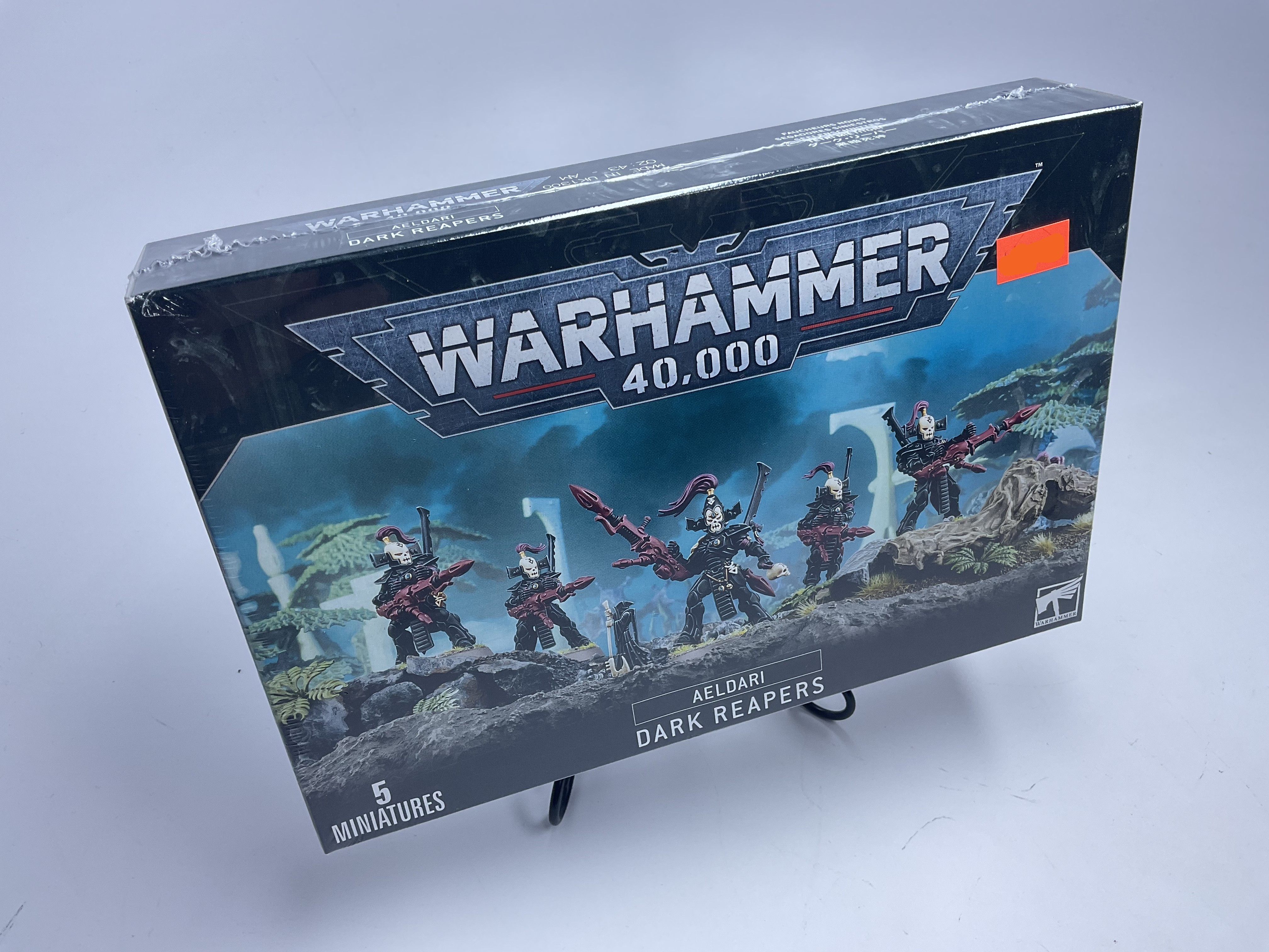 The kit comes with four warriors and an Exarch, as well as a Dark Reaper shrine. The Exarch has a choice of heads and a massive four weapon options, including the classic Reaper launcher, a three-tipped tempest missile launcher, an Aeldari missile launcher and a shuriken cannon.