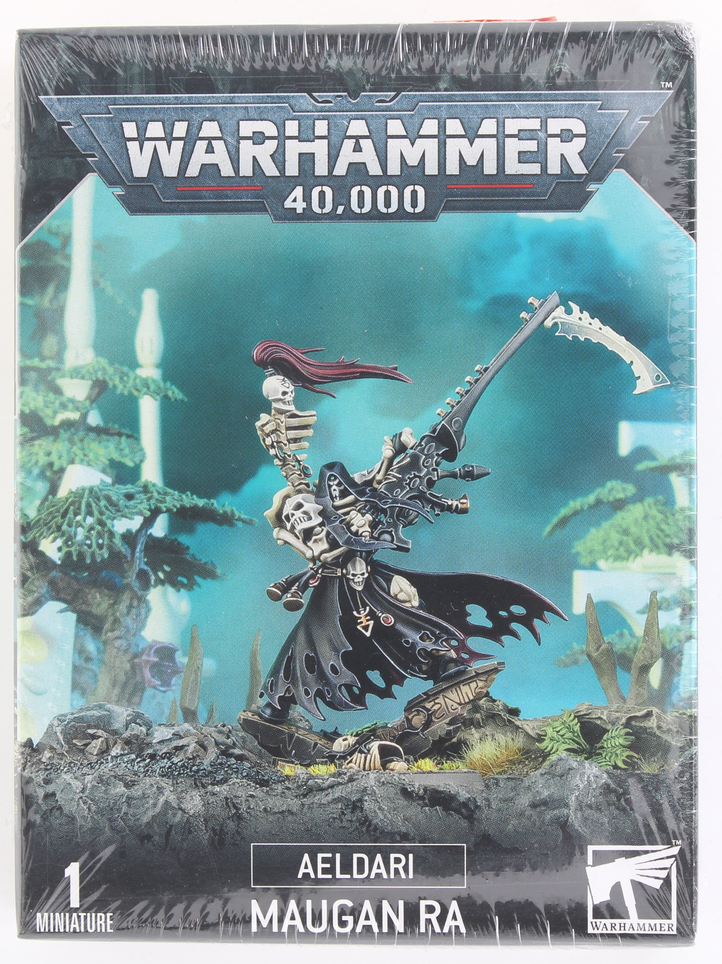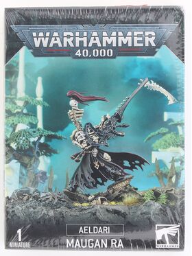 Aeldari: Maugan RaSome call him the Harvester of souls, others call him the Phoenix Lord, but his name is Maugan Ra. An HQ option for the Aeldari force. Armed with is Maugetar, a reaping scythe that also fires mind shurikens, making him deadly from all distances. This 14 piece kit includes 1 sprue and a 40mm base.