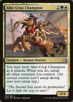 Oracle Text: You may exert Ahn-Crop Champion as it attacks. When you do, untap all other creatures you control. (An exerted creature won't untap during your next untap step.)