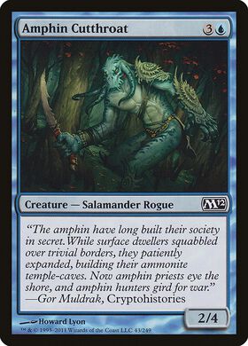 Flavor Text: "The amphin have long built their society in secret. While surface dwellers squabbled over trivial borders, they patiently expanded, building their ammonite temple-caves. Now amphin priests eye the shore, and amphin hunters gird for war." βGor Muldrak, *Cryptohistories*