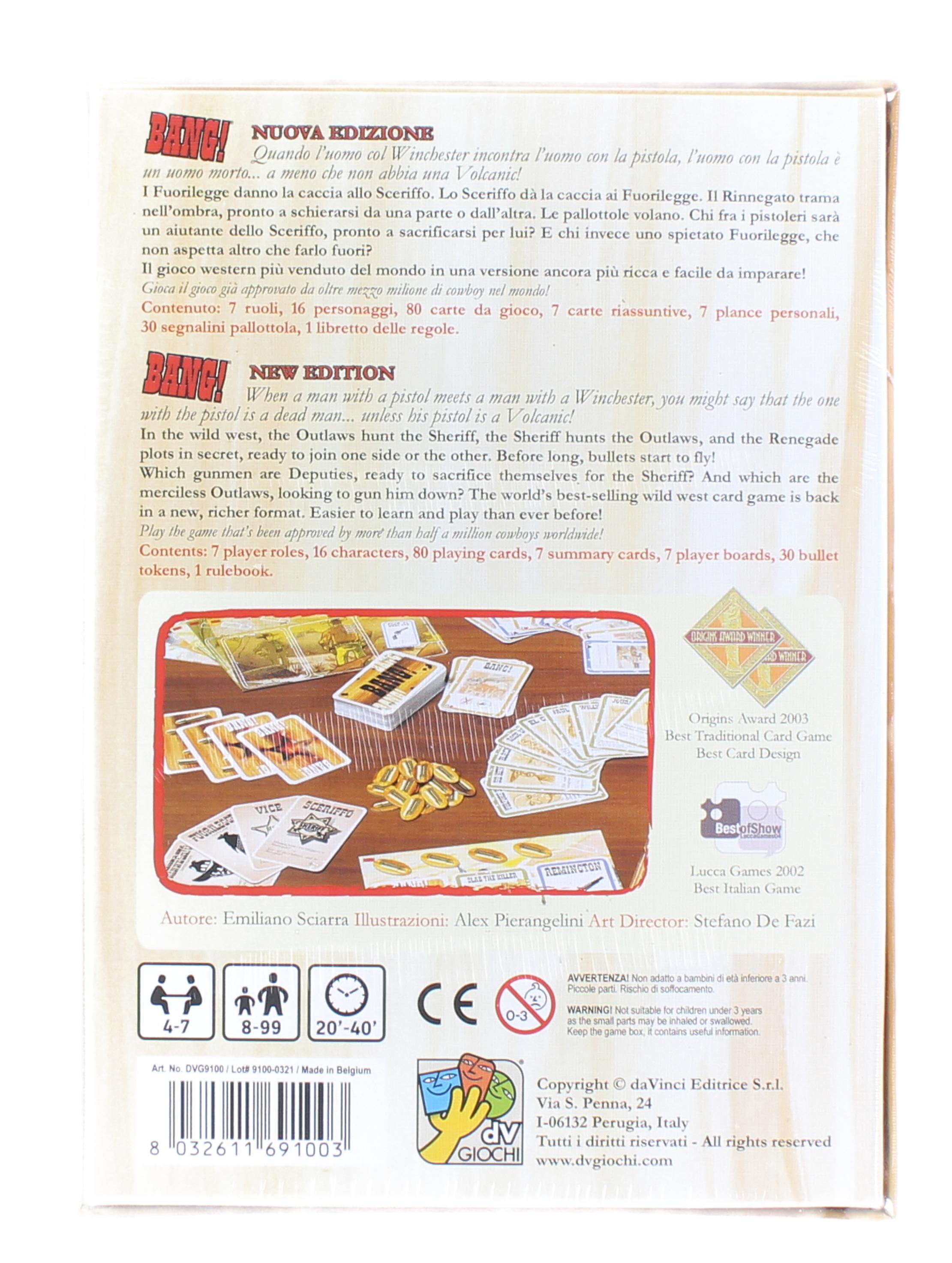 The Outlaws hunt the Sheriff. The Sheriff hunts the Outlaws. The Renegade plots secretly, ready to take one side or the other. Bullets fly! Who among the gunmen is a Deputy, ready to sacrifice himself for the Sheriff? And who is a merciless Outlaw, willing to kill him? If you want to find out, just draw (your cards) in Bang!, the old-fashioned spaghetti western shoot-out card game of bluff and deduction.