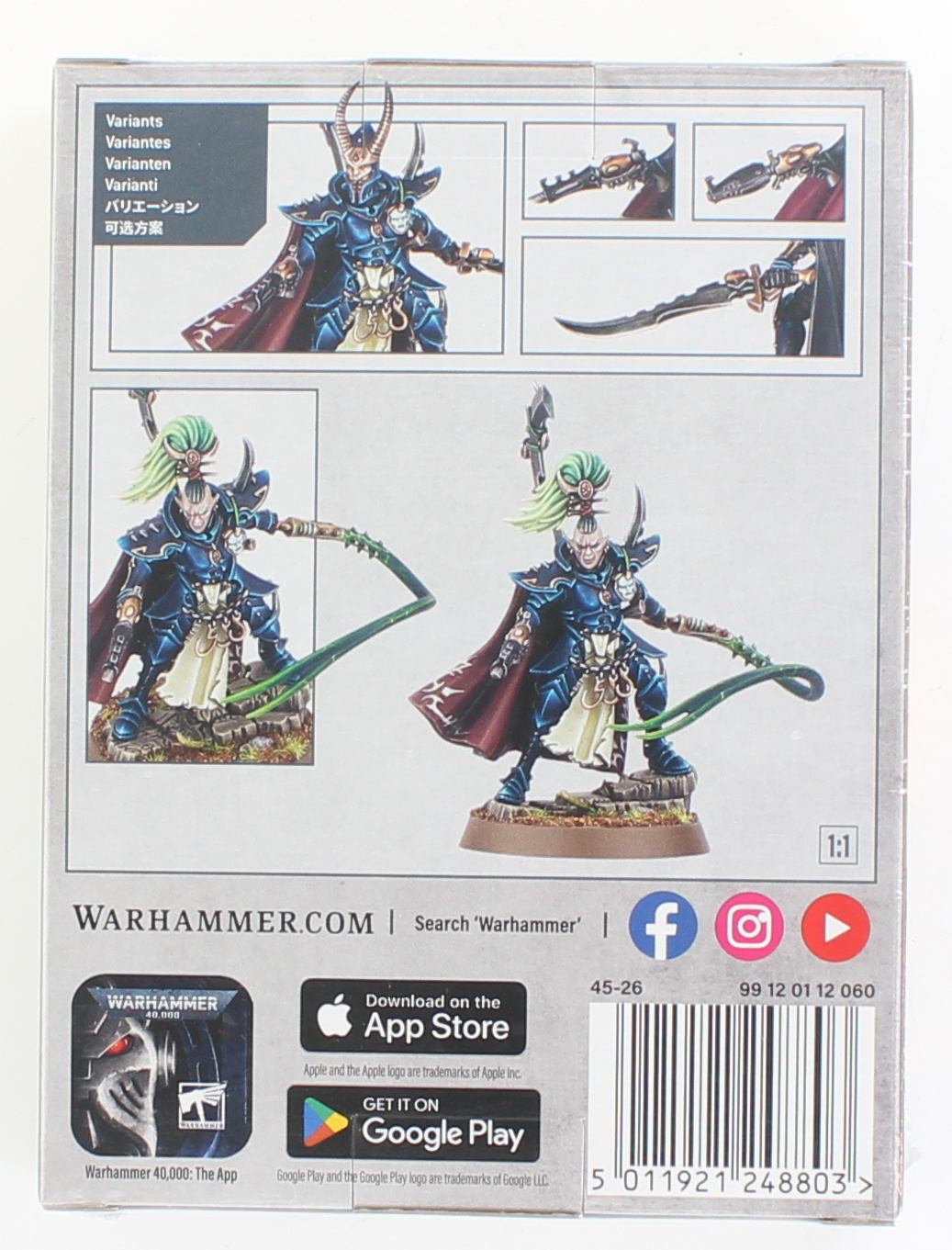 Command your kabal with ruthless precision in a vicious realspace raid led by the new multi-part plastic Archon, a master of cruelty and cunning, armed to dominate the battlefield. This highly customizable kit lets you craft your perfect overlord, featuring two torso options, two collars, and a wide range of weapon choices including a blast pistol, splinter pistol, or soul trap for the right arm, and an agoniser, huskblade, or master-crafted power weapon for the left. Top it all off with your choice of three distinctive heads to make your Archon your own.