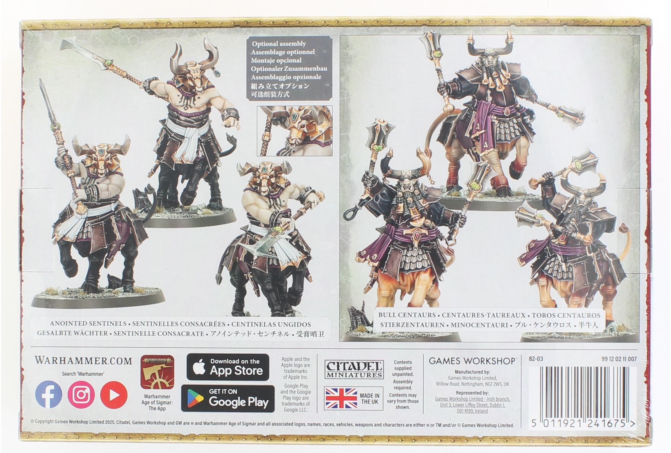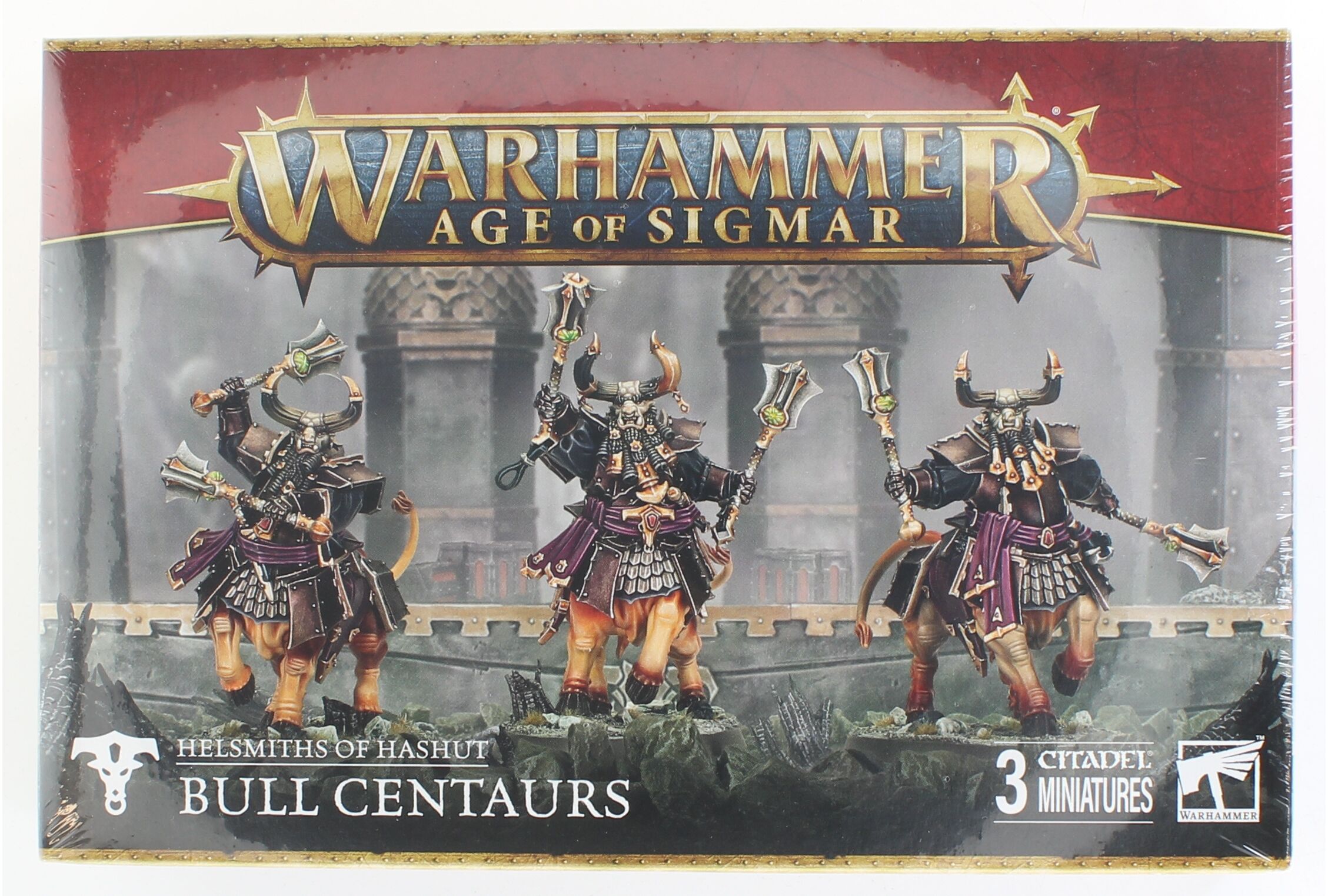 This kit builds three Bull Centaurs, or three Anointed Sentinels, a more fanatical breed raised to serve as temple guardians. These zealous warriors bellow scripture across the battlefield as the Helsmiths lay waste to their enemies, unleashing devastating counter-charges against any who dare disrupt their mastersÂ’ work. Each Bull Centaur comes with four interchangeable horn options, while the Anointed Sentinels include three interchangeable masks, allowing for unique customization. The set also includes a Helsmiths of Hashut transfer sheet with 450 transfers.