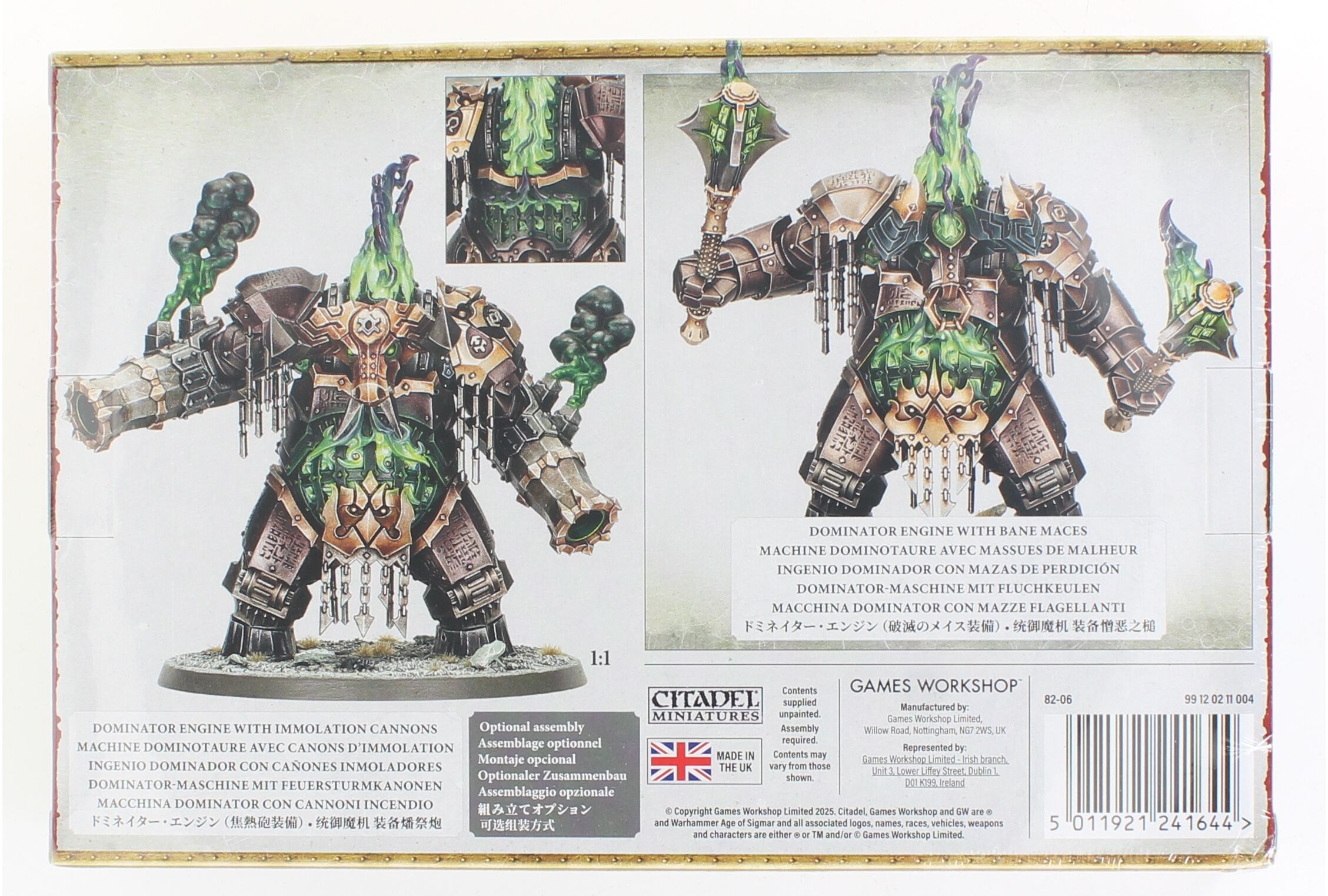 These towering, mechanised behemoths are forged in the image of the Bullfather himself, each one animated by a blazing core of tormented daemon-essence sealed within its furnace-heart. Those armed with bane maces thunder through enemy lines, crushing all before them beneath ensorcelled blows, while variants wielding immolation cannons spew torrents of daemonfire that spread with terrifying, supernatural speed. Each Dominator Engine includes customisation options such as two distinct stomach plates, a choice of two faceplates, two pairs of horns that can be mixed and matched, and fully poseable arms allowing you to make you Dominator Engine your own.
