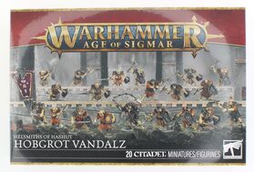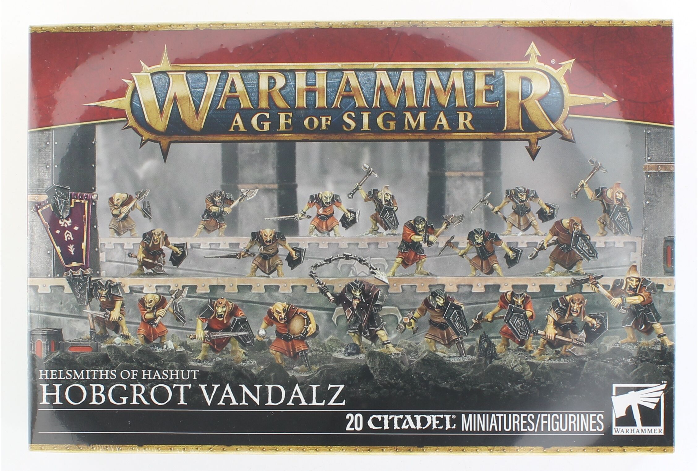Hobgrots are cunning, treacherous creatures who've learned that serving the Helmsmiths of Hashut is far safer than opposing it. This set builds 20 Hobgrot Vandalz, including a sneaky champion armed with either a cruel chain weapon or a vicious dagger. You'll also find a Helsmiths of Hashut transfer sheet featuring 450 transfers.