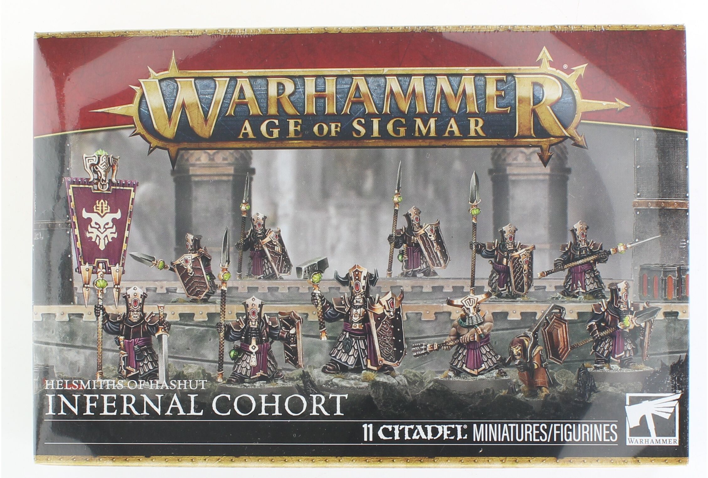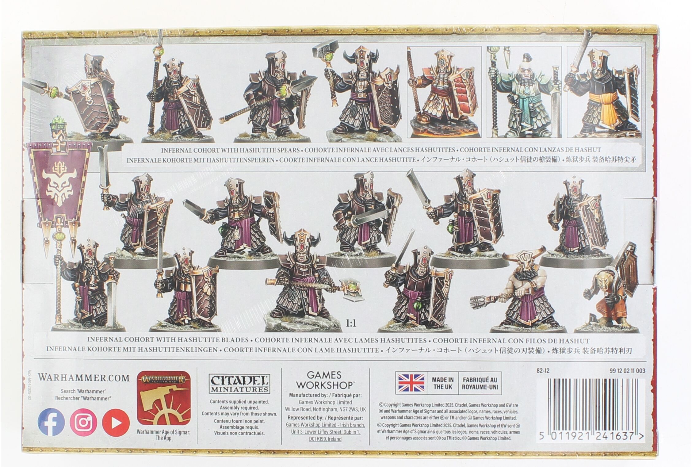 The Infernal Cohort forms the unyielding backbone of every Helmsiths of Hashut army. These duardin can be armed with Hashutite Blades or Spears. Those armed with Hashutite blades are relentless hunters, cutting down their foes with ruthless precision, while regiments wielding Hashutite spears create impenetrable walls of steel and fury, holding fast even against the fiercest of assaults! Every box includes build options for a banner bearer and musician.
