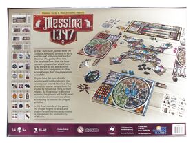 In Messina 1374, the latest game from the designer of Underwater Cities and Praga Caput Rengi, players take the role of noble families with landholdings in the countryside around Messina. They attempt to rescue people from the plague by relocating them to their estates. As the plague in Messina worsens, the players will build small independent communities while attempting to control the plague with fire. In the final rounds of the game, the plague begins to abate, and players return the rescued citizens to repopulate the resilient city of Messina.