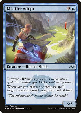 Oracle Text: Prowess (Whenever you cast a noncreature spell, this creature gets +1/+1 until end of turn.) Whenever you cast a noncreature spell, target creature gains flying until end of turn.