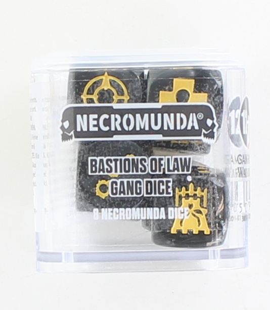 Complete your Necromunda collection with this specialized dice set, featuring 8 pearlised black dice with yellow ink pips in the standard Necromunda configuration: