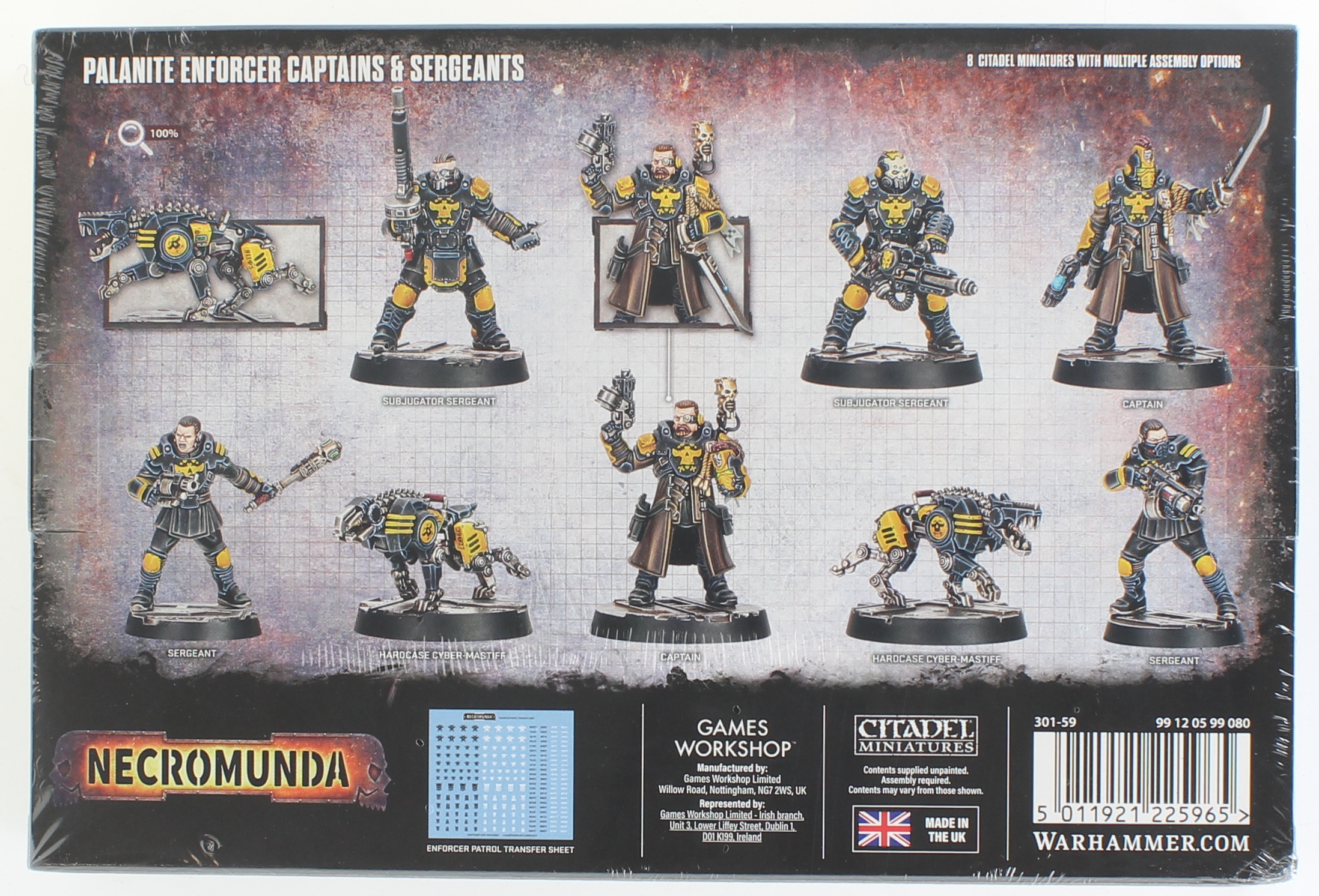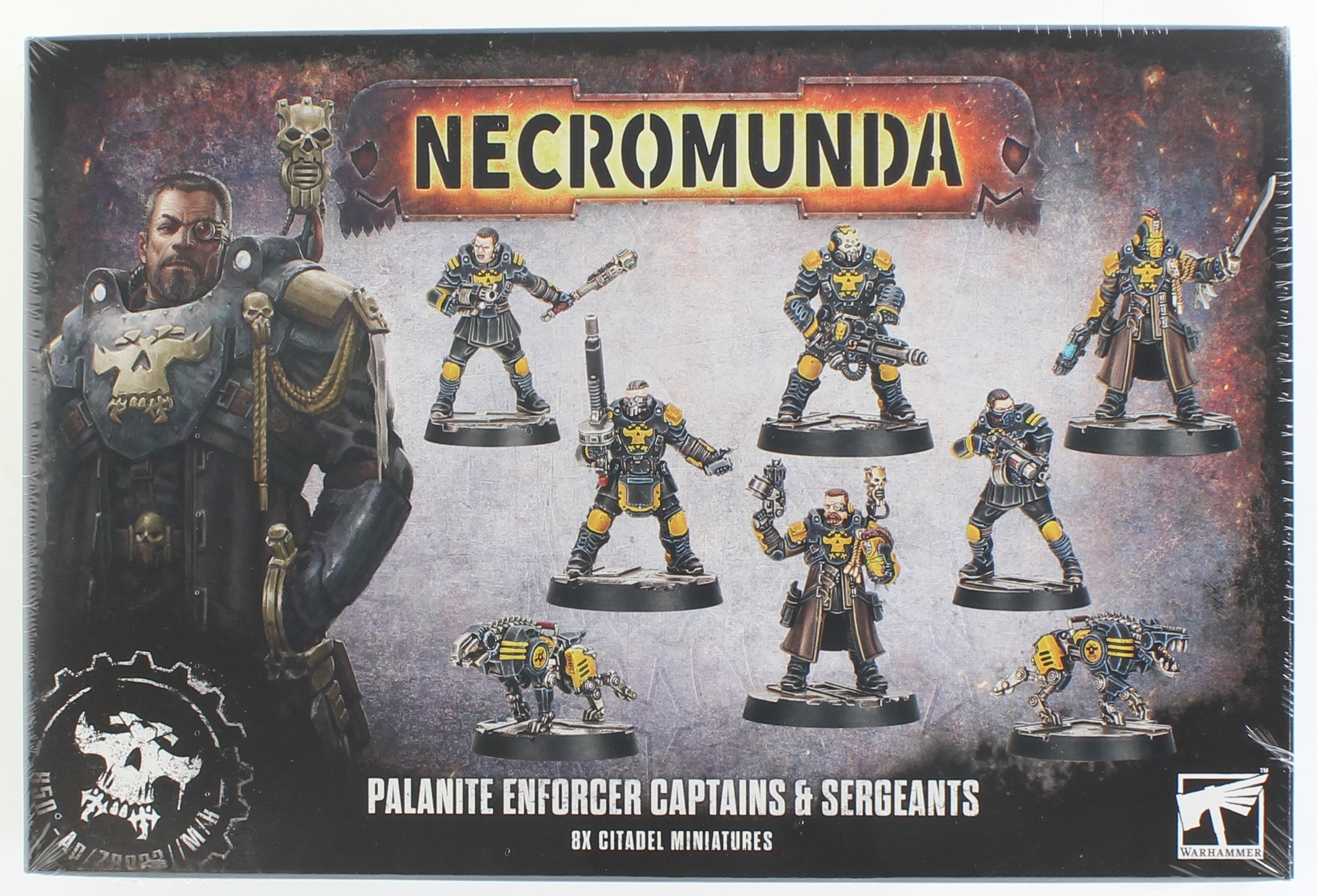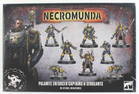 The Palanite Enforcers are hardened veterans of Lord Helmawrs justice, seasoned by years of brutal service in the depths of Hive Primus. Trained in crowd suppression and battlefield control, theyll use any means necessary to keep the hives industry running. This set arms you with the leaders and specialists needed to command your Enforcer patrols.