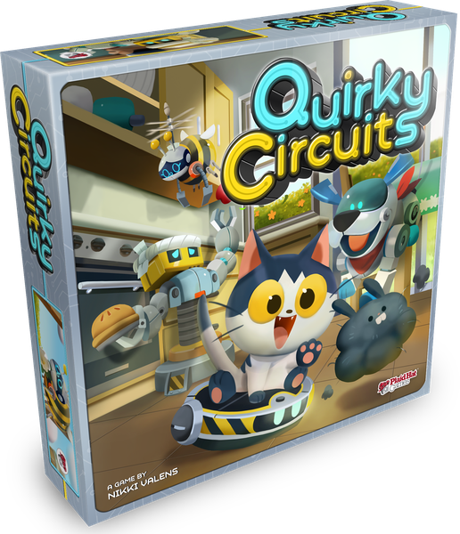 Quirky Circuits is a cooperative game of robot programming silliness for two to four players. Each player contributes to the programming of an adorable robo-friend. But be warned - no one knows what commands the other players will be tossing in! Help the little robot complete its task before their battery runs out! With 24 scenarios of increasing intensity, Quirky Circuits is guaranteed to provide hours of brain-bending fun.