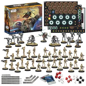 The Separatist Alliance was formed by outlying star systems that aligned themselves against what they believed to be a corrupt Galactic Republic. Exploiting their sizable workforce, the Separatist Alliance has created a massive droid army that it frequently deploys to push back against the Galactic Republics control. While these battle droids are not the most proficient fighters, the vast amount of them the Separatist Alliance is able to put onto the battlefield has made them a considerable threat to the Republic. The Separatist Alliance Starter Set contains a 600-point Recon-level army and all the dice, templates, tools, and tokens a player needs to begin playing their first games of Star WarsTM: Legion. When a player is ready for even bigger games, this starter serves as an ideal starting point for players to expand and customize their armies with additional units from other Star Wars: Legion unit boxes.