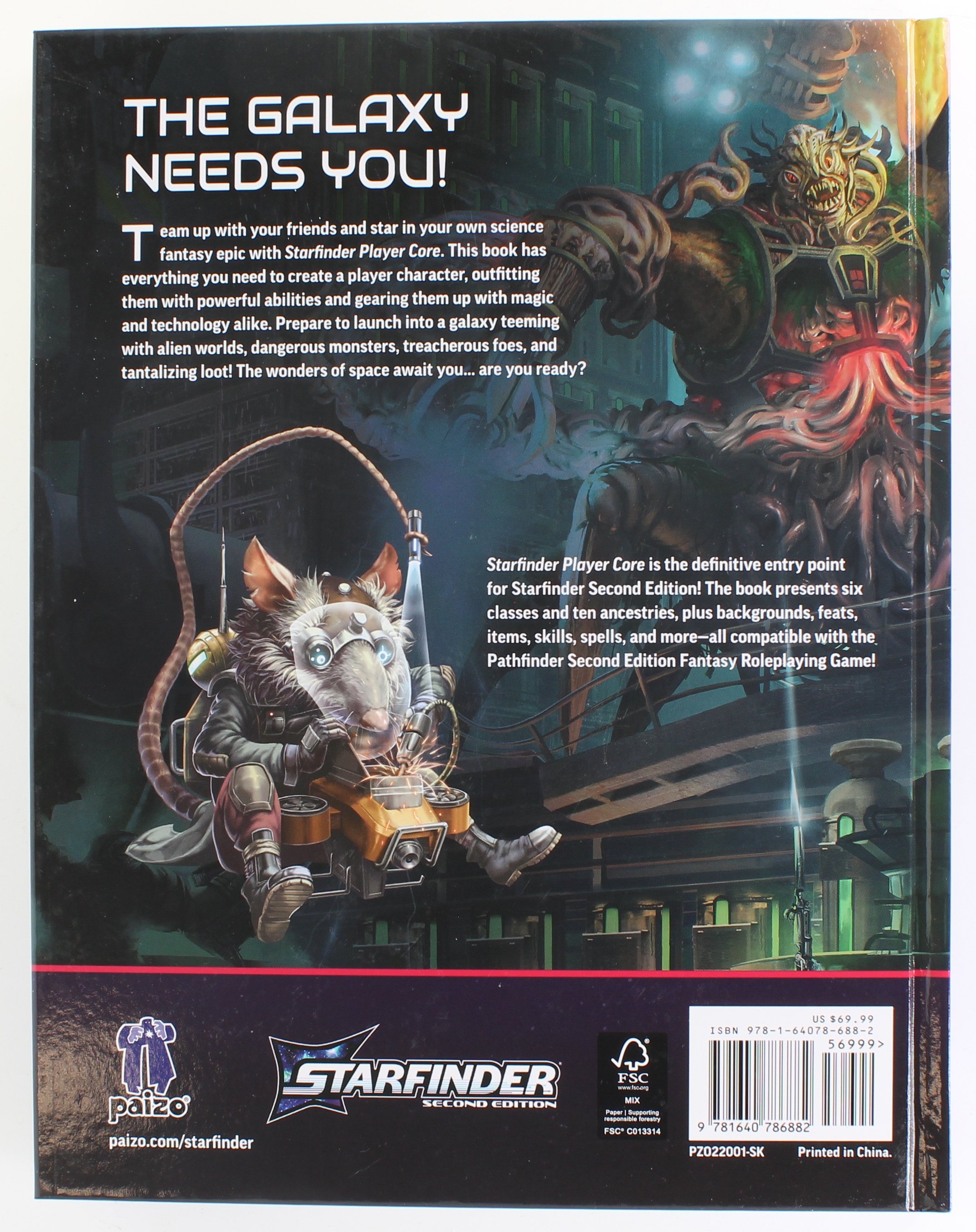 The Starfinder Player Core is the definitive entry point for Starfinder Second Edition, with everything a player needs to learn how to play the game! Choose from 10 ancestries, six character classes, and hundreds of feats and spells to create unique characters ready to take on a ruthless galaxy awash with magic and opportunity. Starfinder Player Core brings the Starfinder RPG into its new edition and is now 100% compatible with the acclaimed Second Edition of the hit Pathfinder Roleplaying Game.