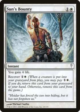 Oracle Text: You gain 4 life. Recover {1}{W} (When a creature is put into your graveyard from the battlefield, you may pay {1}{W}. If you do, return this card from your graveyard to your hand. Otherwise, exile this card.)