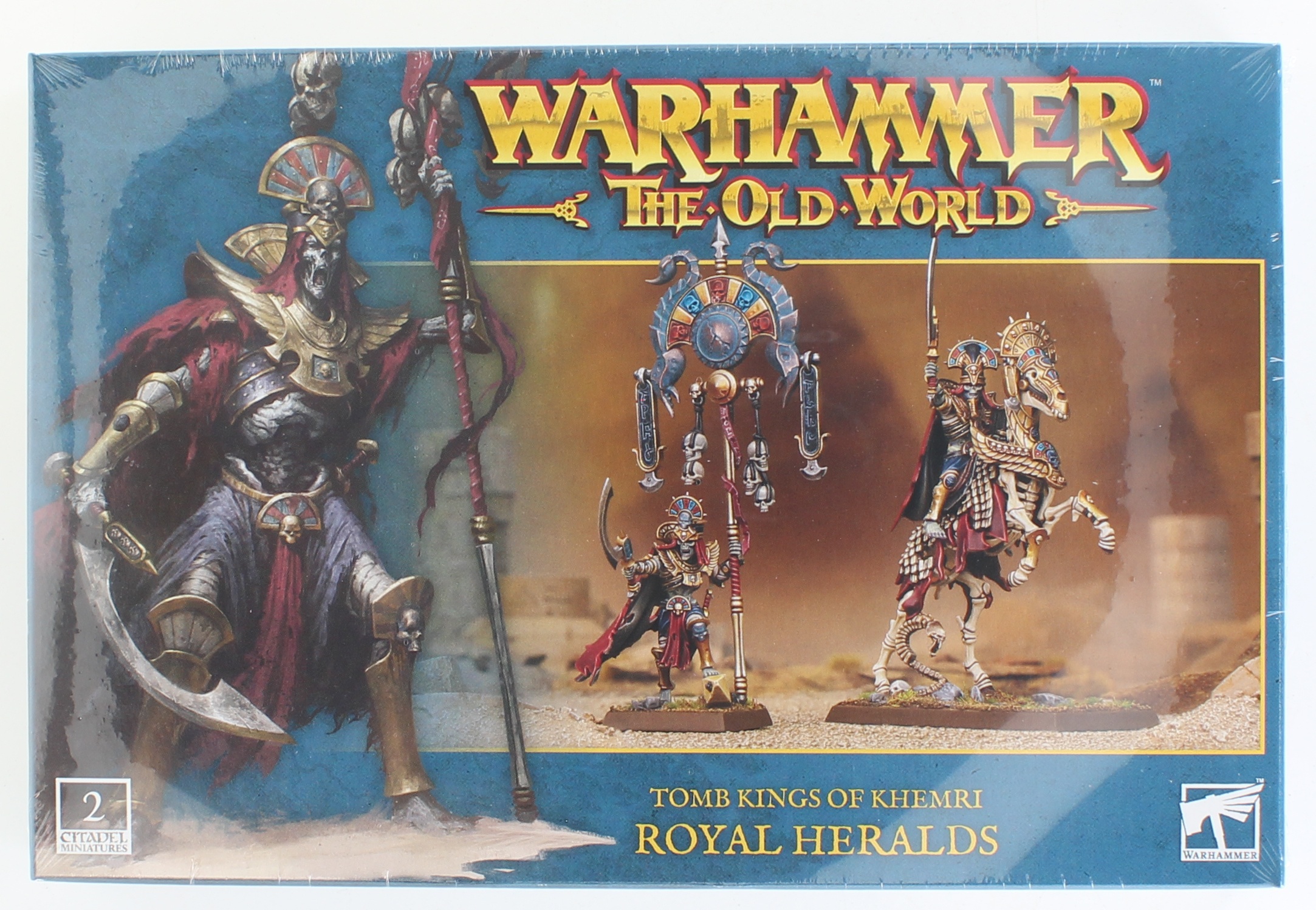 Lead your legions with the Tomb Prince and Royal Herald! This versatile plastic kit lets you build two Khemri heroes, one on foot and one on skeletal horseback. Youll also get a wealth of customization options, including capes, collars, ornate chest decorations and two distinct head options for both the Tomb Prince and the Royal Herald. Packed with detail and flexibility, this kit is the perfect way to crown your Tomb Kings of Khemri force with heroic might.