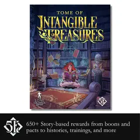 Tome of Intangible Treasures is a compendium of 650+ new ways to provide story-based character rewards and mechanical growth options. Perfect for GMs and players alike, this tome is full of ways to express your characters via boons, blessings, charms, pacts, titles, histories, advanced trainings, and more.