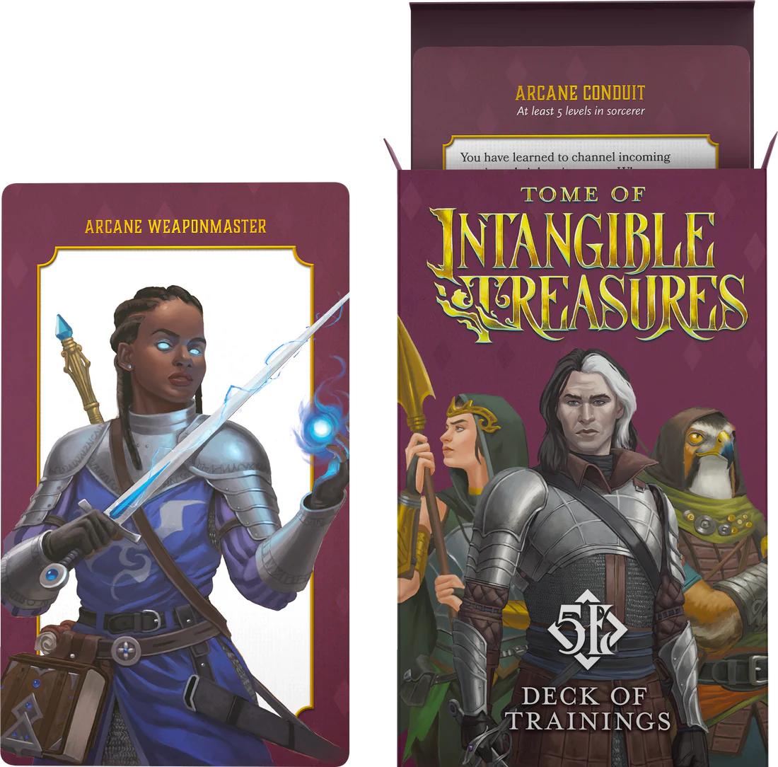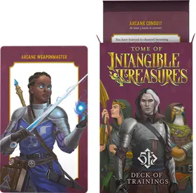 A deck of 60 tarot-sized reference cards for each of the advanced and epic trainings found within Tome of Intangible Treasures. These cards can be used independently of the book, though they work best alongside it as reference cards and handouts for players. The cards are gorgeously illustrated with portraits of characters and scenes representing each training.